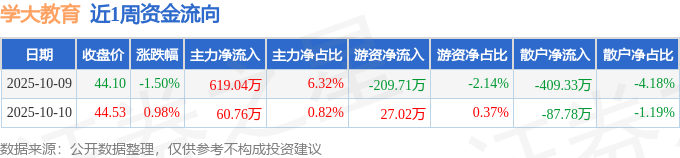 沪深股通持股方面,截止2025年10月10日收盘,学大教育深股通持股数为49.09万股,占流通股比为41.0%。
