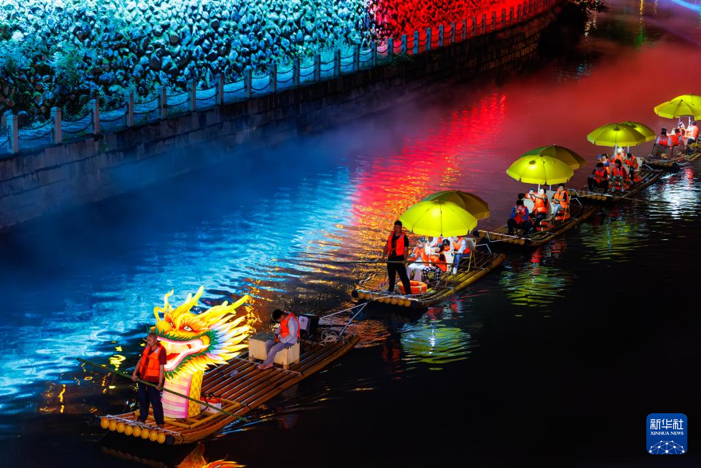10月6日,游客在福建省长汀县体验“夜游汀江”项目。新华社记者 李昊泽 摄